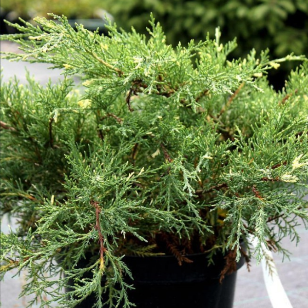 Можжевельник средний 'White Splash' — декоративный хвойный кустарник с оригинальной пестрой окраской хвои. Отличается раскидистой, стелющейся формой кроны и умеренным темпом роста. Основная декоративная ценность заключается в сочетании зеленой и кремово-белой хвои, создающей эффект 'брызг'. Хорошо подходит для создания цветовых акцентов в ландшафтных композициях, рокариях и альпинариях. Растение достаточно неприхотливо и устойчиво к городским условиям.