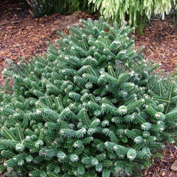 Пихта корейская Бриллиант (Brillant) – это очень красивый хвойный кустарник, радующий глаз благодаря интересной форме кроны, которую называют подушкообразной, Используют для создания декоративных групп, а также в рокариях и альпинариях, часто ее высаживают в контейнеры. Пихта корейская Бриллиант относится к карликовым сортам пихты. Как правило, его высота составляет 0,6 м. Ширина кроны около 0,6 метров. Пихта Бриллиант растет очень медленно и на протяжении всей жизни – а это, не много ни мало, 300 лет, в год примерно на 4 см. На Бриллианте практически не образуются шишки. Этот сорт пихты источает сильный и очень приятный аромат хвои, который будет чувствоваться на всем участке. Хвоя плоская, светло зеленая с нижней стороны серебристо серая. Почвы предпочитает нейтральные хорошо дренирванные. В ландшафте применяют для украшения рокария, альпинария, хвойных групп. Морозостойкость до -34С.