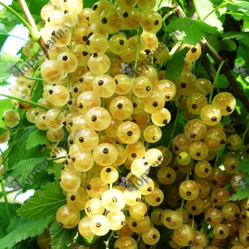 Смородина белая Версальская - высокоурожайный сорт. Во время цветения распускаются желтовато-белые колокольчики на длинных кистях. Цветы, а затем и ягоды сидят на длинных прямых черешках.