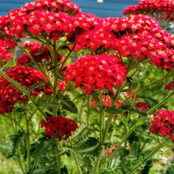 Тысячелистник обыкновенный Red Velvet  Achillea millefolium 'Red Velvet' - неприхотливый многолетник высотой до 70 см. Листья расположены в очередном порядке, дважды или трижды перисто-рассеченные с многочисленными ланцетовидными сегментами. Корзинки до 0,7см в диаметре собраны в плотные щитковидные соцветия. Листочки обертки продолговатые с бурым, пленчатым краем. Язычковые цветки красного цвета.